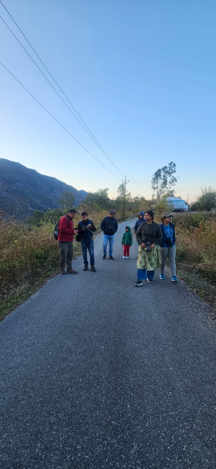 The experience was further enriched by interactive moments, such as identifying a Scarlet Minivet and observing Crimson Sunbird up close. Participants also explored agricultural fields and forest patches, spotting a wide variety of species including parakeets, shrikes, and laughingthrushes. The walk concluded with relaxed discussions over tea, making it not just a birding session but a memorable social and learning experience.