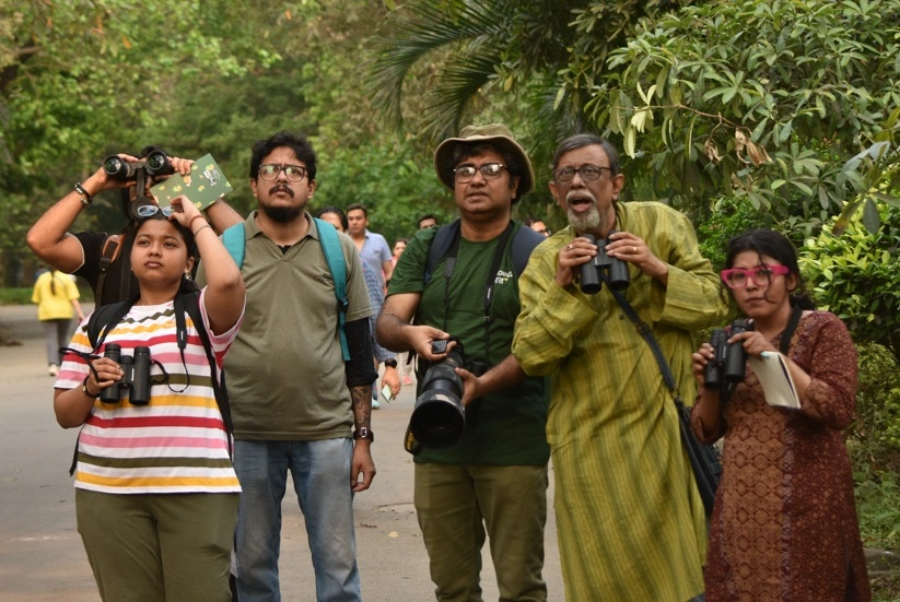 The bird walk at Rabindra Sarobar (Safari Park side), Kolkata, organised with the support of Ataavi Foundation, brought together 7 participants from diverse age groups and professions for a refreshing morning of urban birding. Led by Sounak Dutta, along with Sudipta Ghosh, the walk began at 7:30 AM near Gate No. 8, where participants were introduced to Ataavi’s mission and the newly launched app. The group started by observing a large congregation of waterbirds on the lake’s island—an impressive sight amidst the city’s bustling environment. Nesting colonies of Painted Storks and Grey Herons were particularly fascinating, with juveniles visible in nests and nearby branches.