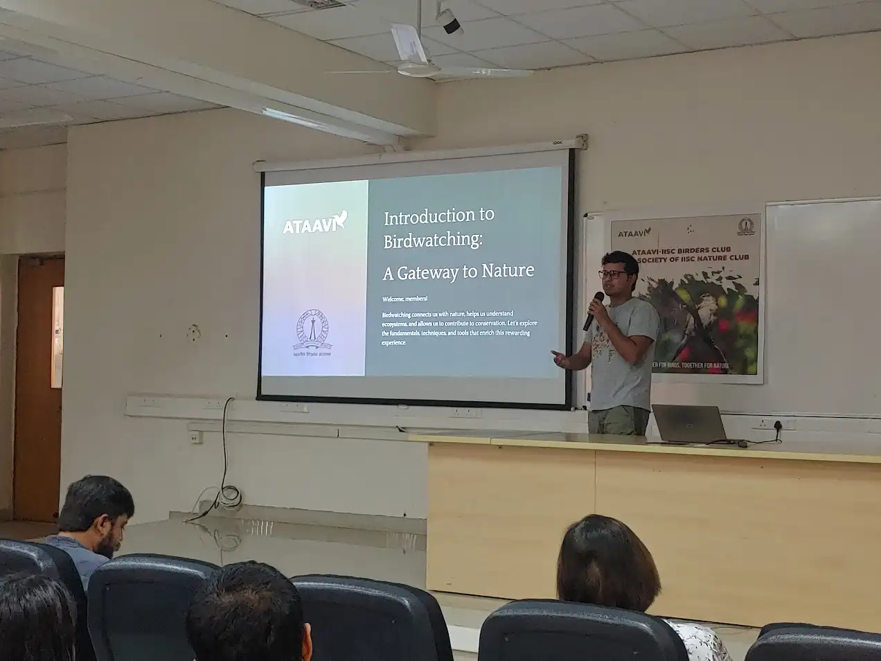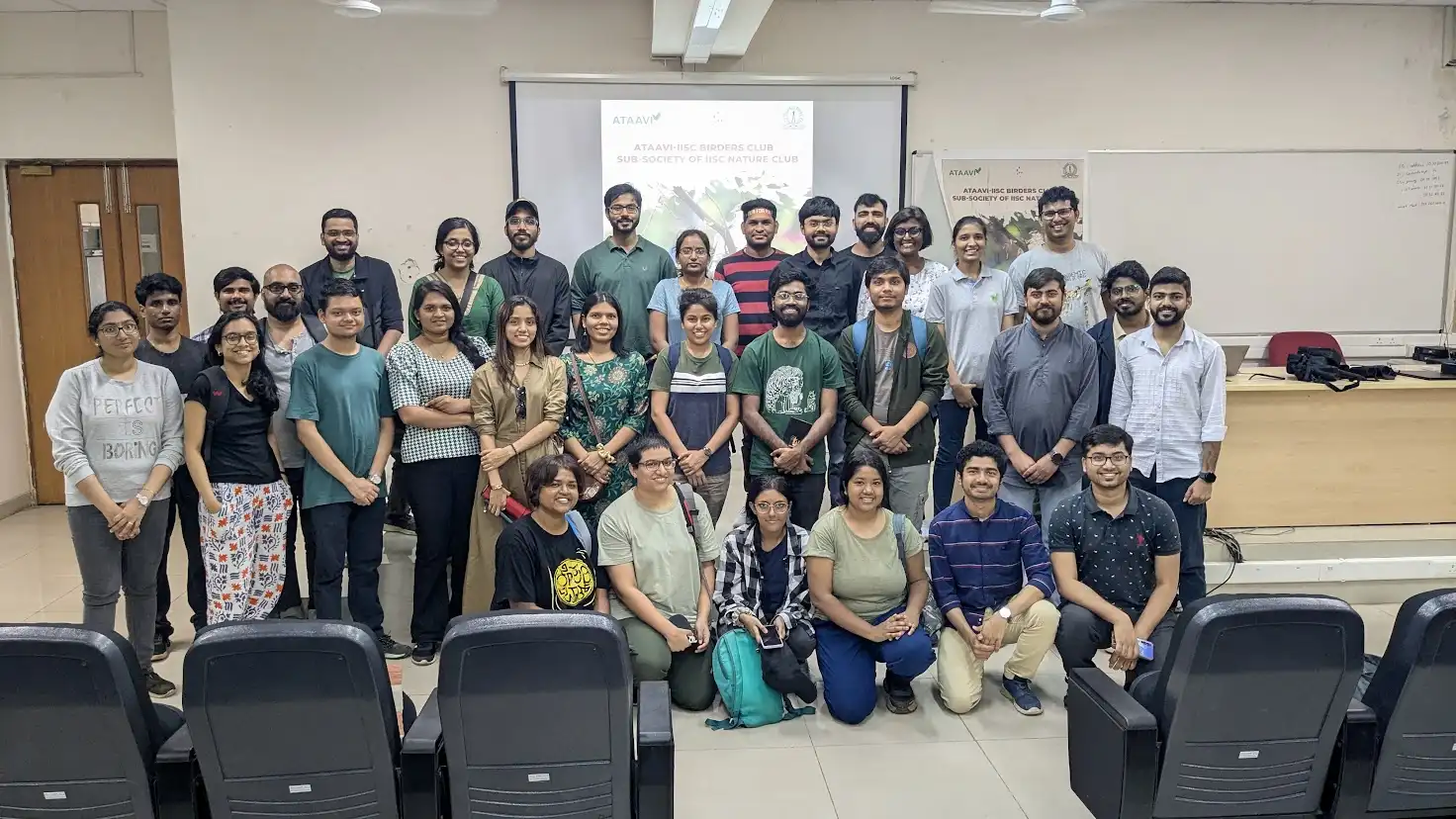 The event brought together curiosity, conservation, and community through an engaging session by expert Kiran Bagade, a lively bird quiz, and a guided bird walk across the IISc campus. Highlights included young Adi winning the quiz and participants spotting avian wonders with the help of dedicated bird guides.